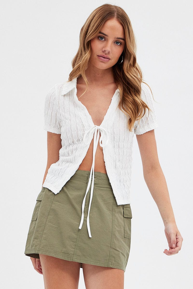 White Tie Front Shirts Short Sleeve