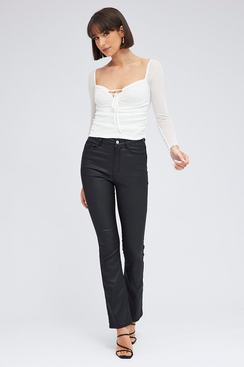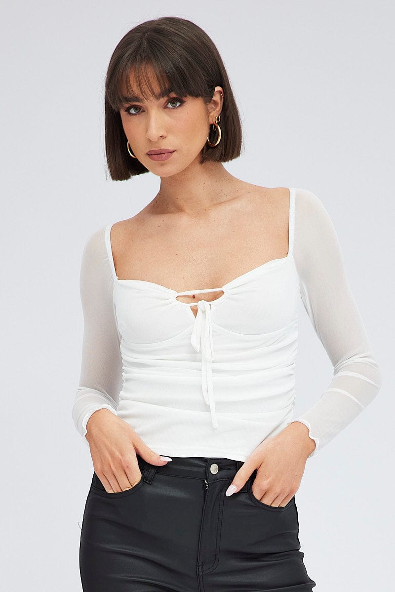 White Top Long Sleeve Sweetheart Keyhole Ruched Mesh