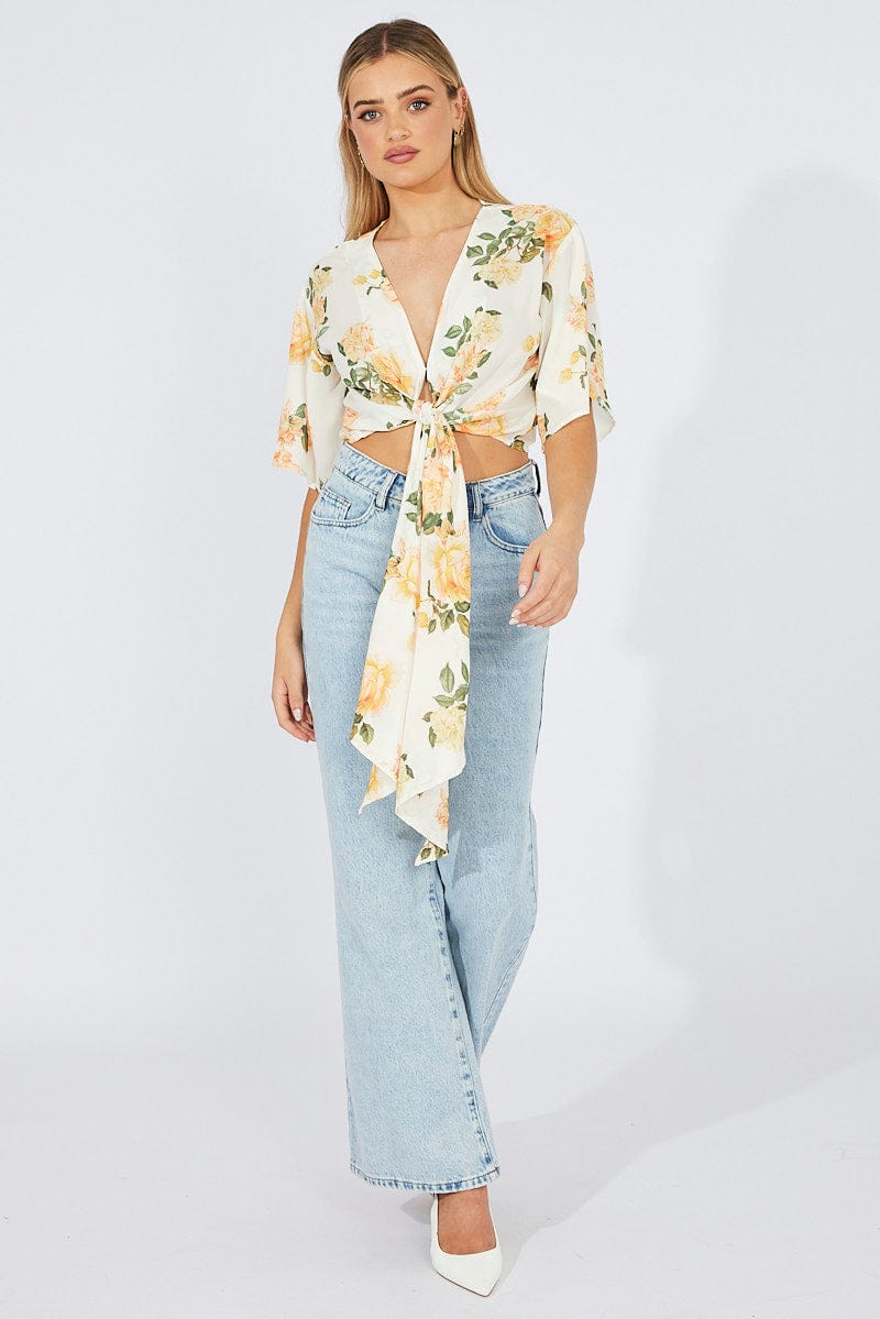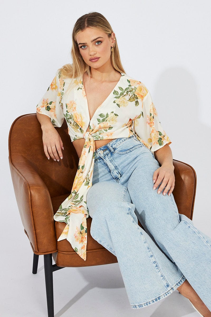 - Yellow Floral Print, Tie-Front, Unlined