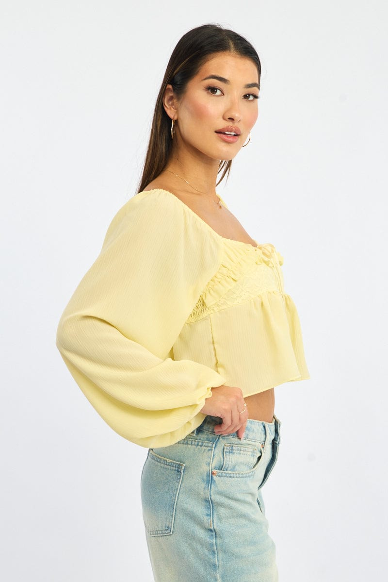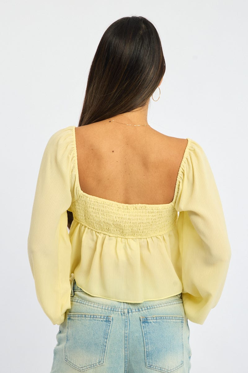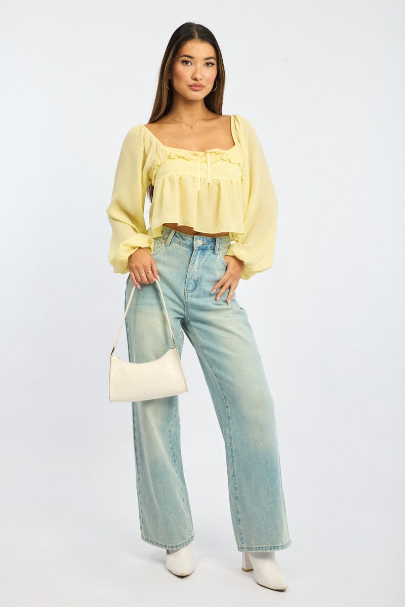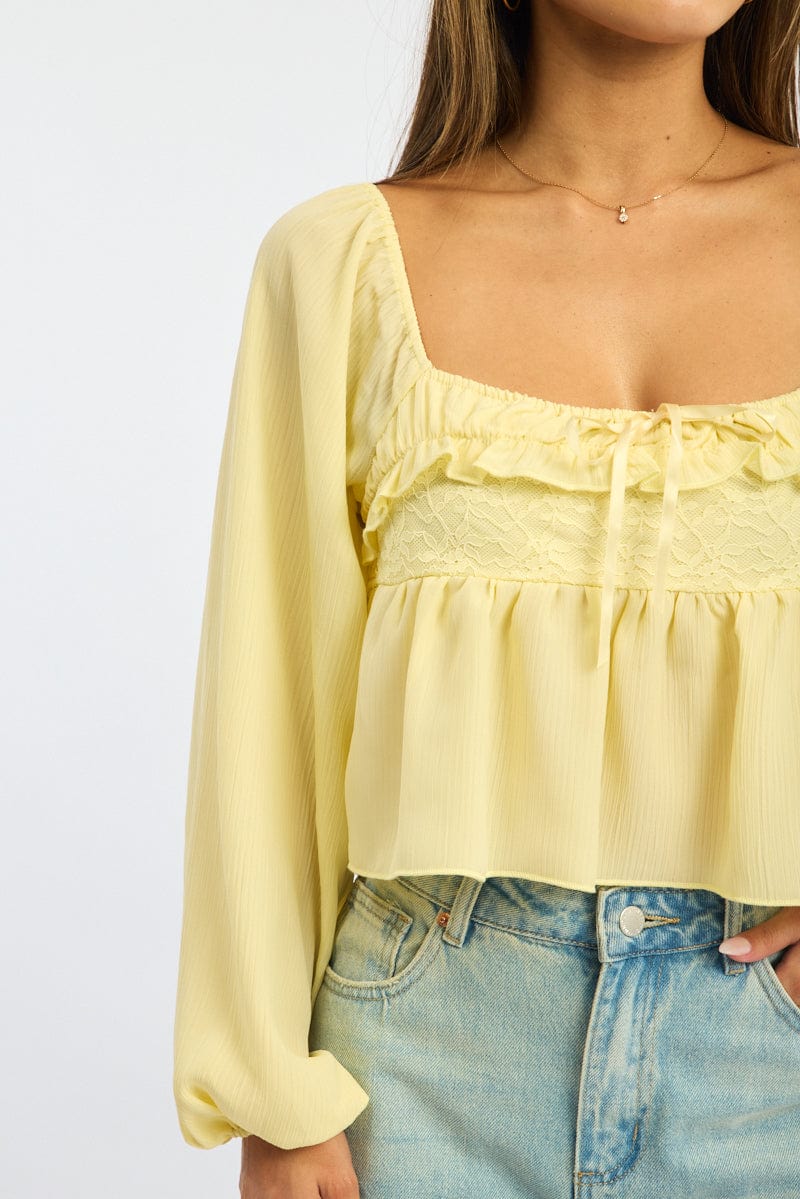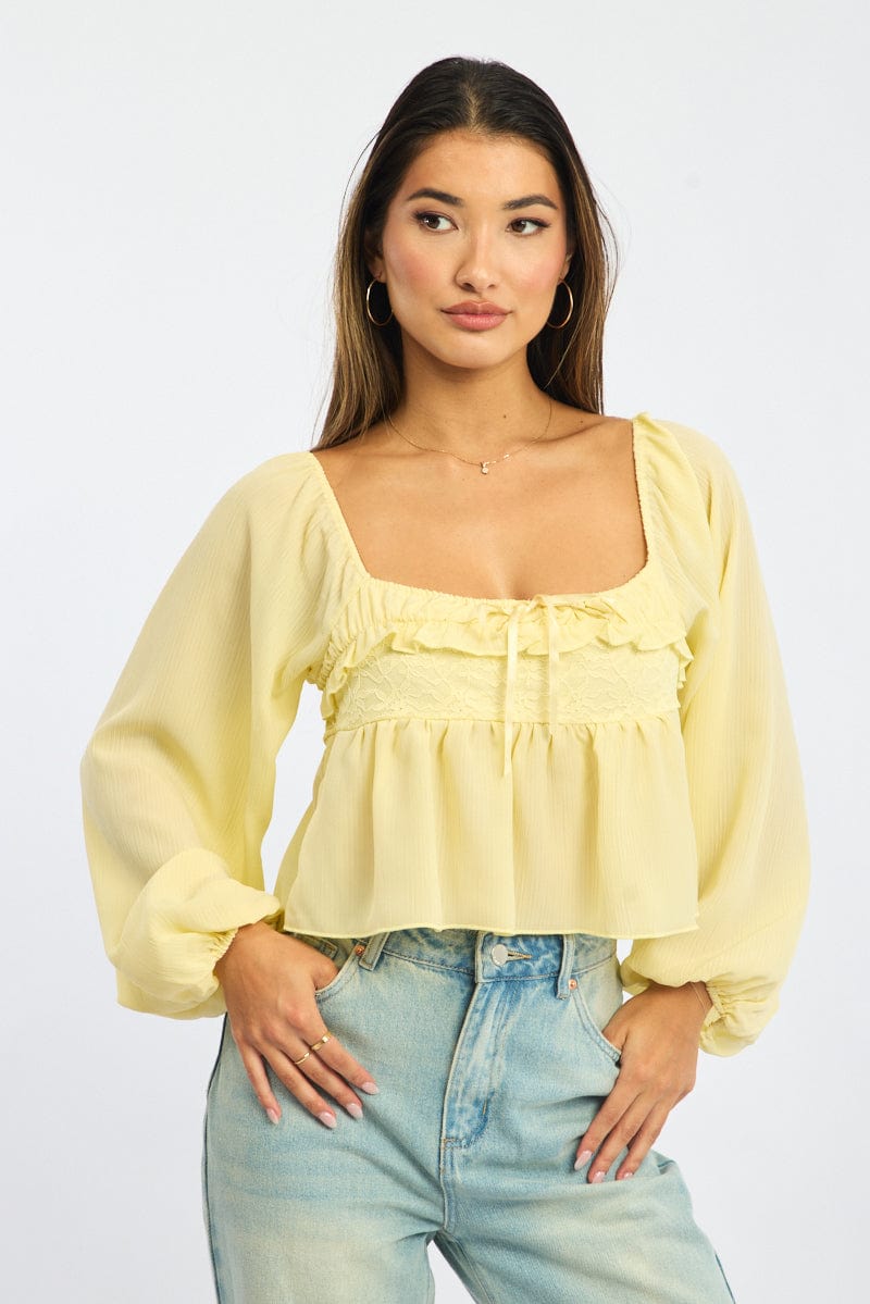 Yellow Lace Frill Top Long Sleeve Square Neck