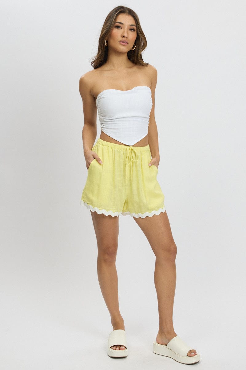 Yellow Shorts Elasticated Waist Ric Rac