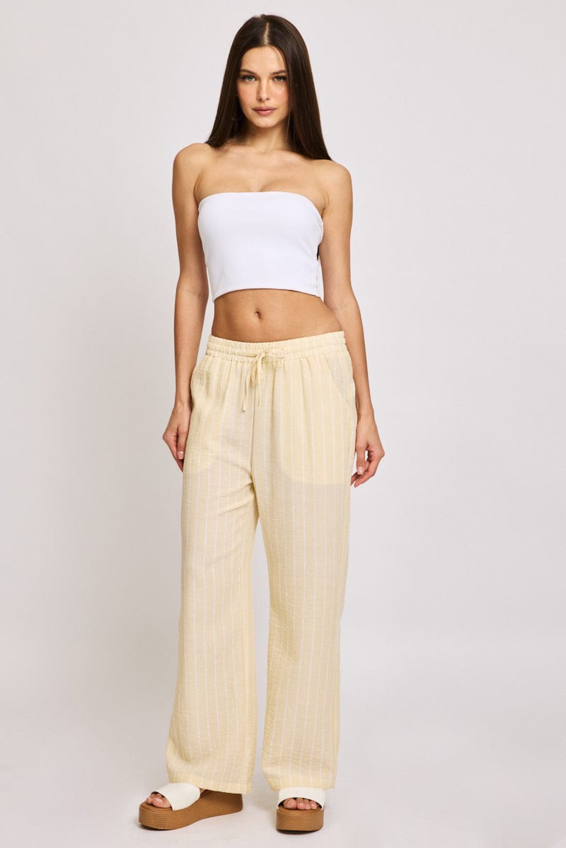 Yellow Stripe Wide Leg Pants Elasticated Waist